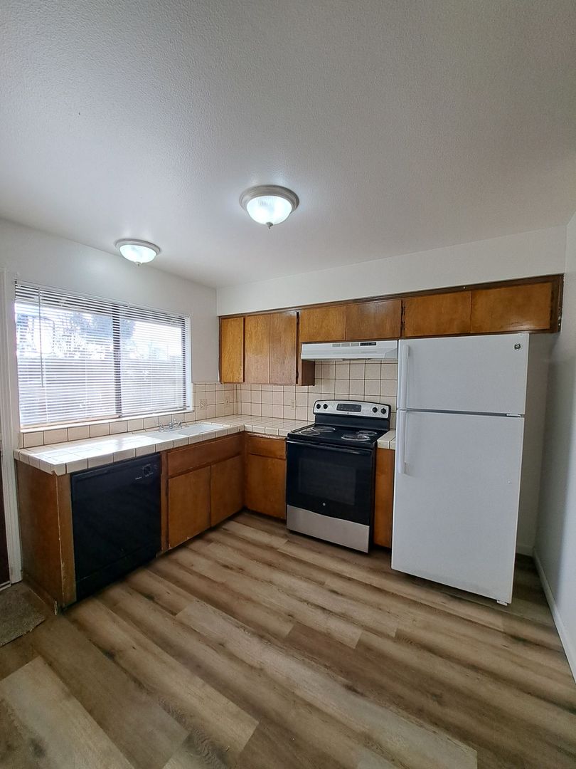 Welcome to your new home in Fresno, CA! This single-level, two-bedroom apartment offers a comfortable and convenient living experience. The apartment features a full bathroom and new flooring throughout, creating a fresh and modern atmosphere. The kitchen is equipped with essential appliances including a refrigerator, dishwasher, and electric stove, making meal preparation a breeze.